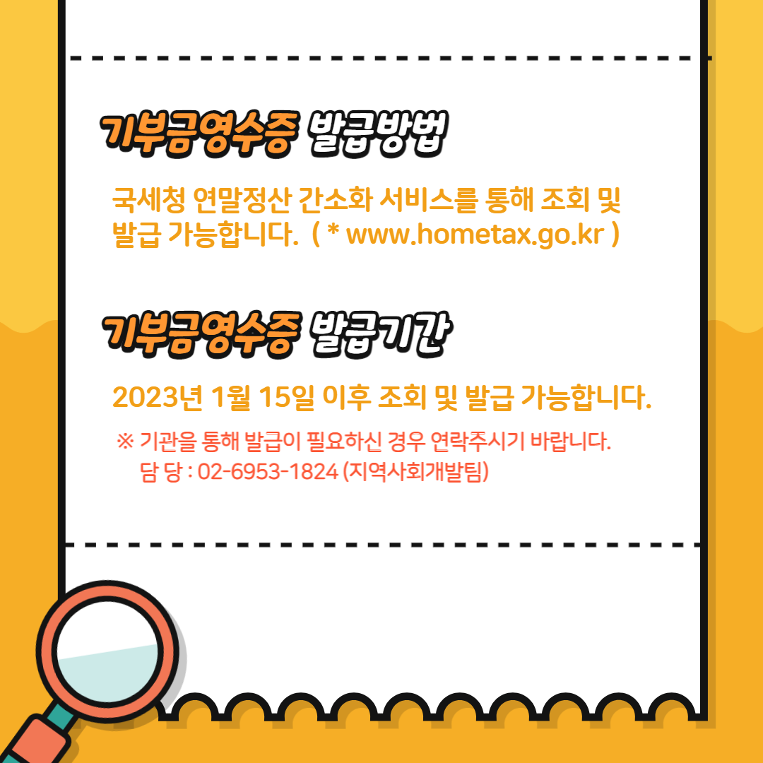 * 2023년 1월 15일 이후 국세청 홈텍스에서 기부내역 조회 및 발급 가능