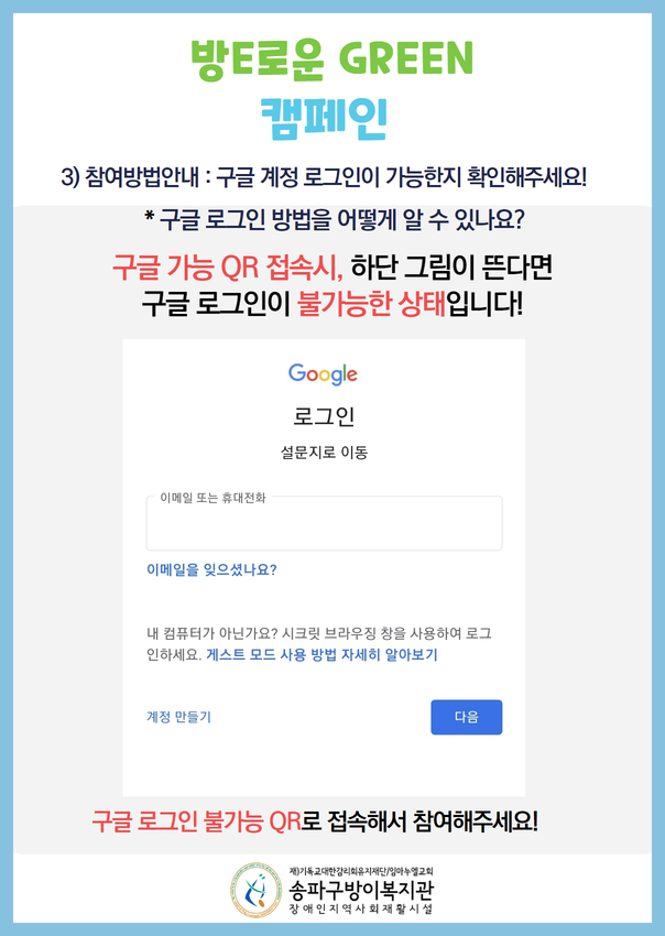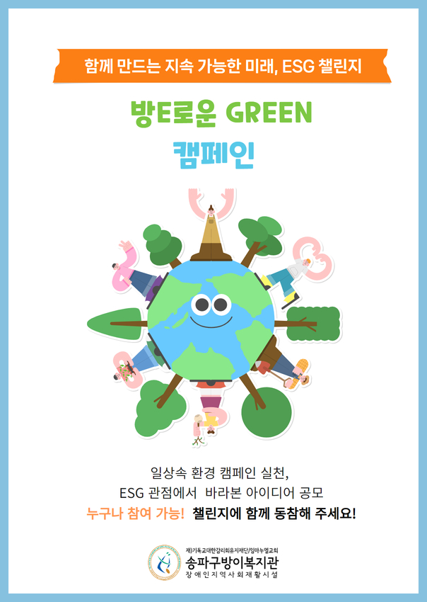 송파구방이복지관에서는 ESG 환경 보호를 위해 "방E로운 GREEN 캠페인"을 진행하고 있습니다.