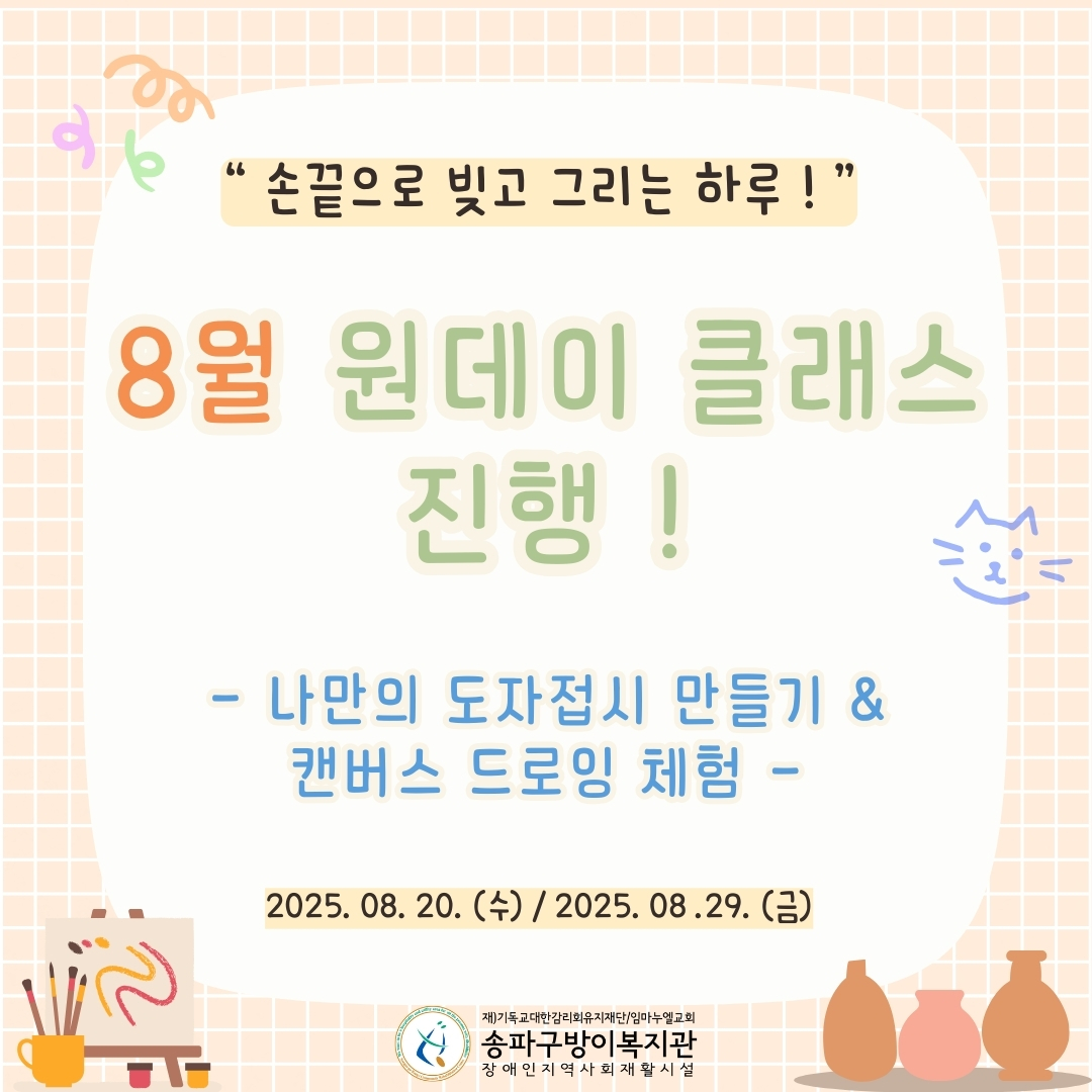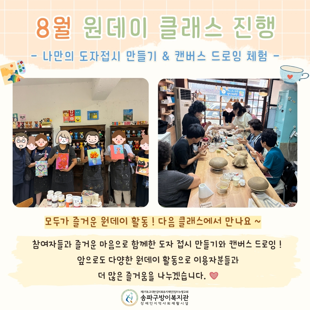 성인지원팀 1DAY CLASS - 나만의 도자접시 만들기 & 캔버스 드로잉 체험 진행 !