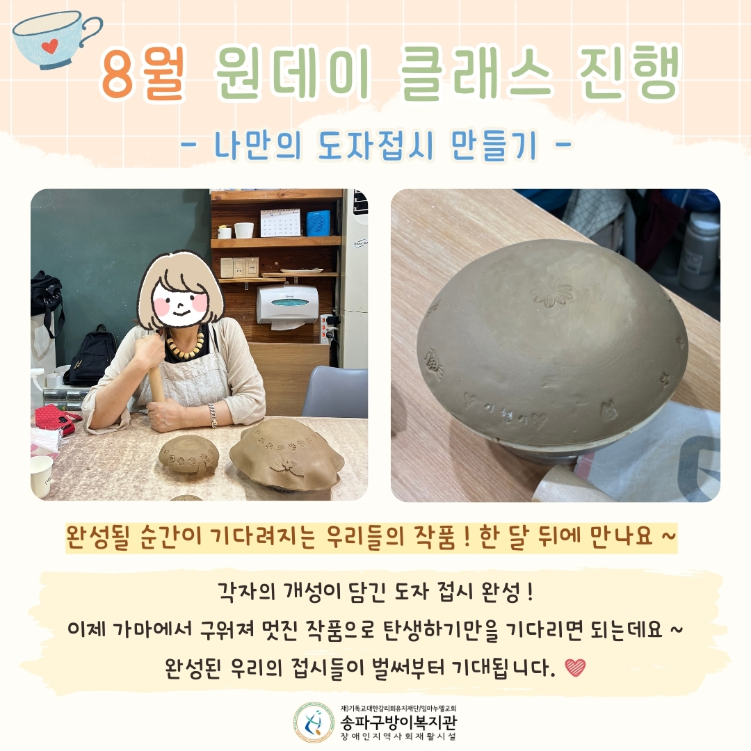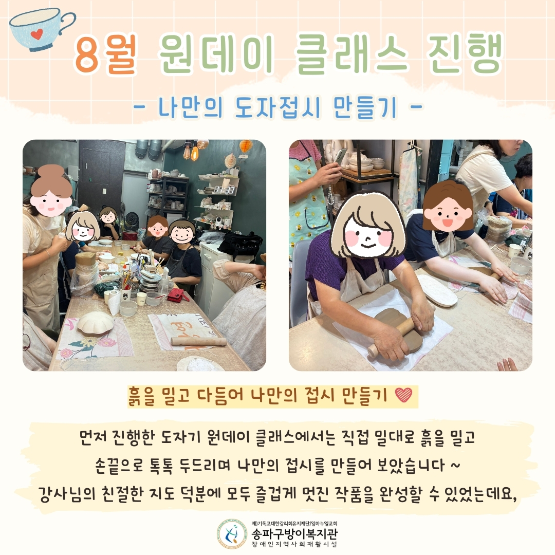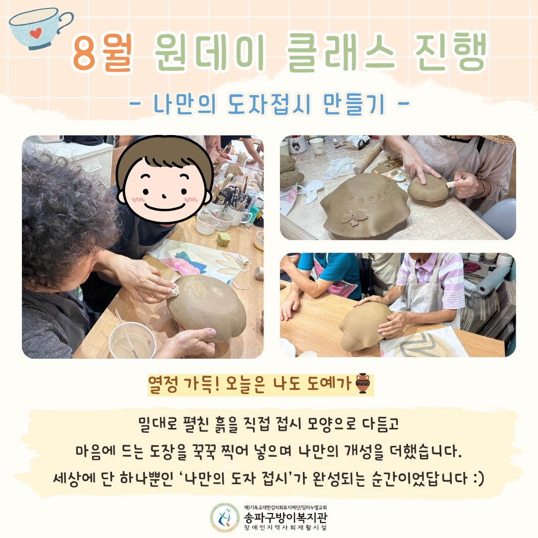 지난 8월 20일(수)과 8월 29일(금), 성인지원팀에서는 도자 접시 만들기와