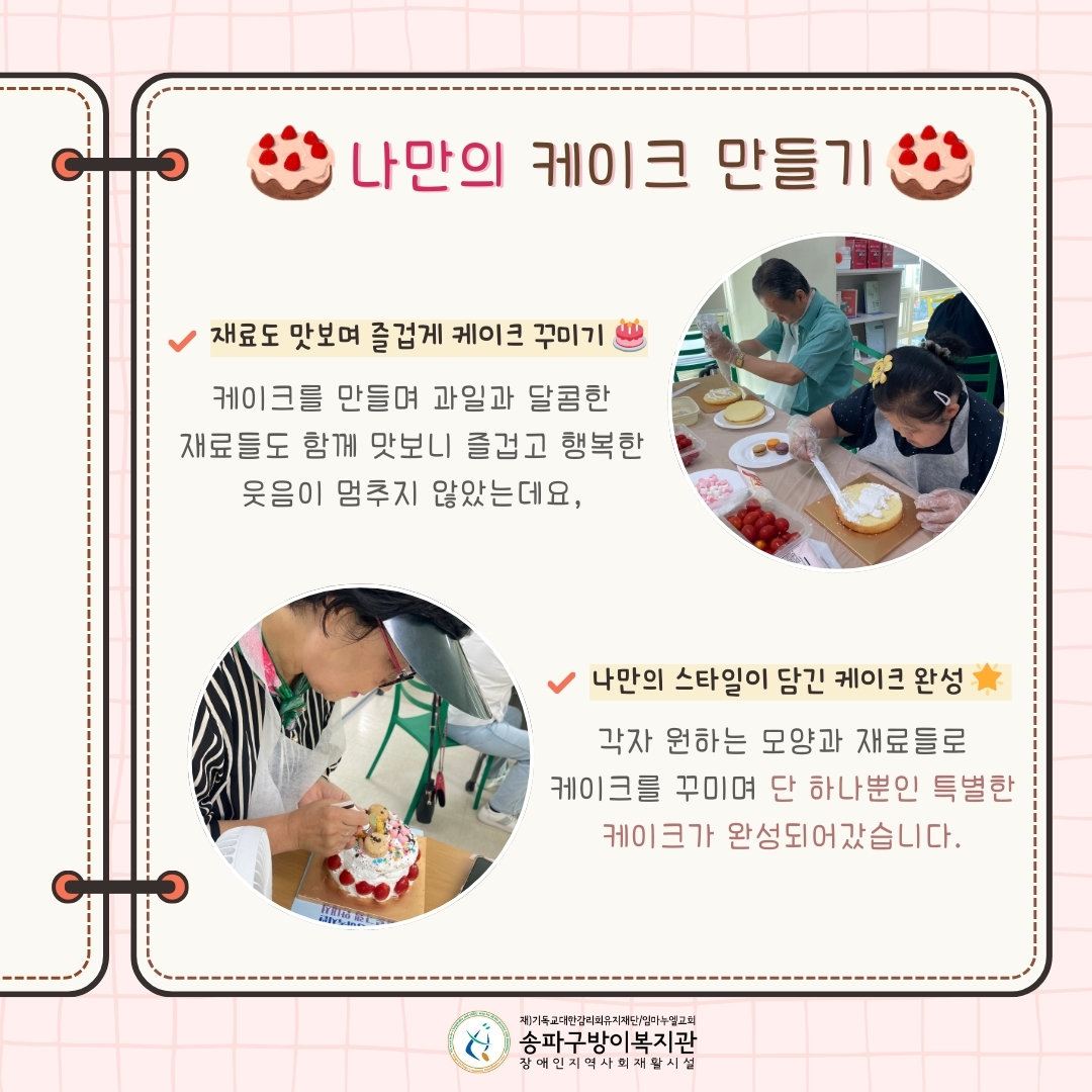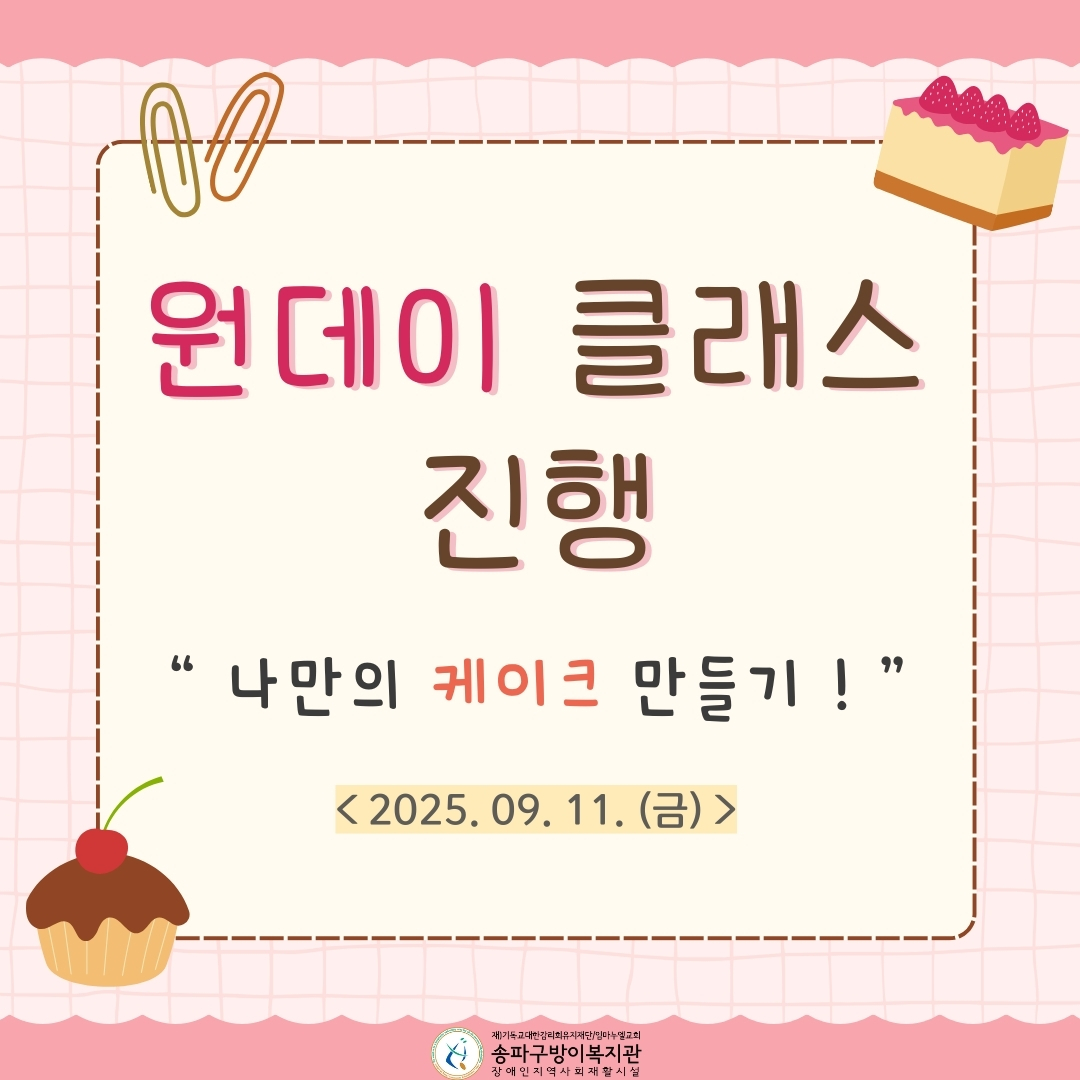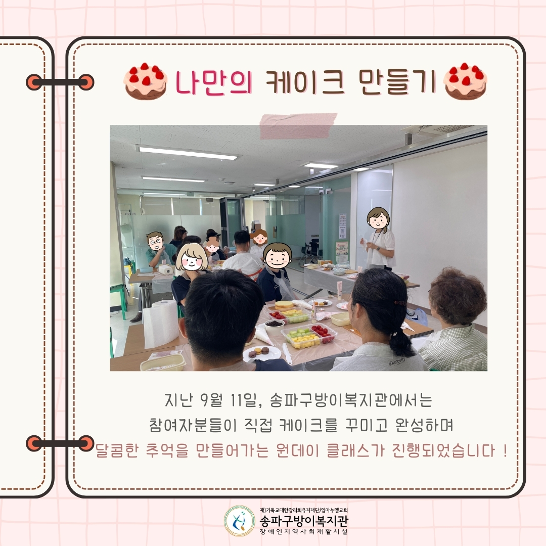 지난 9월 11일(목), 복지관에서는 ‘나만의 케이크 만들기’ 원데이 클래스가 진행되었습니다 !