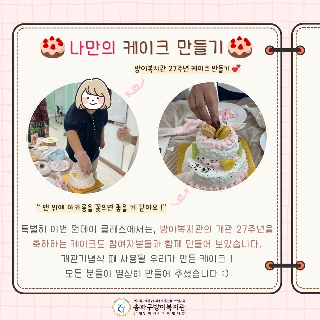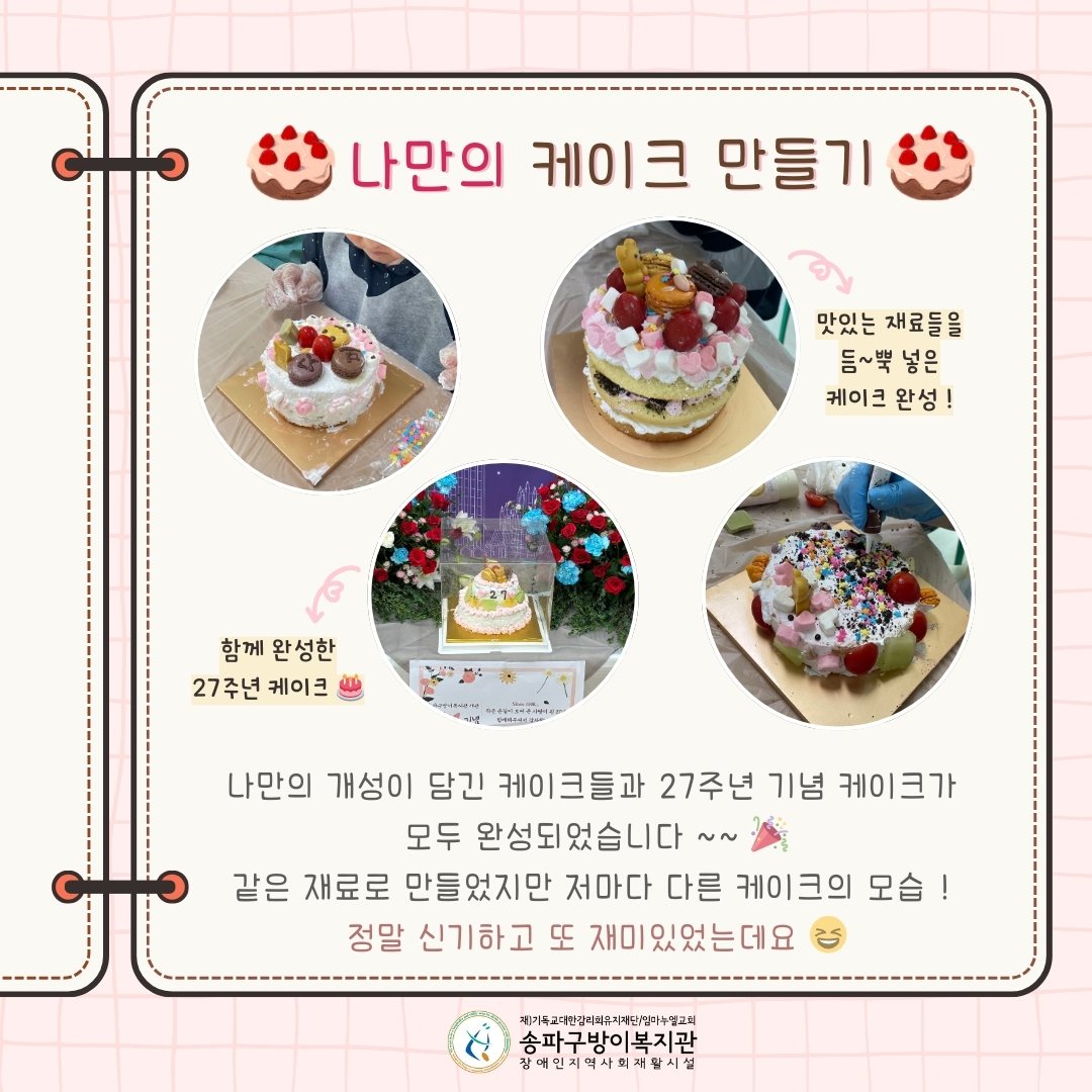 특별히 이번에는 복지관 개관 27주년을 기념하는 케이크도 참여자분들과 함께 만들어 더욱 뜻깊은 추억을 나눌 수 있었습니다 ~~