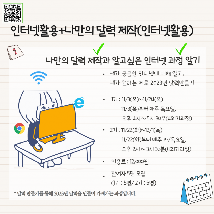 ▷내용: 내가 궁금한 인터넷에 대해 알고, 내가 원하는데로 2023년 달력 만들기