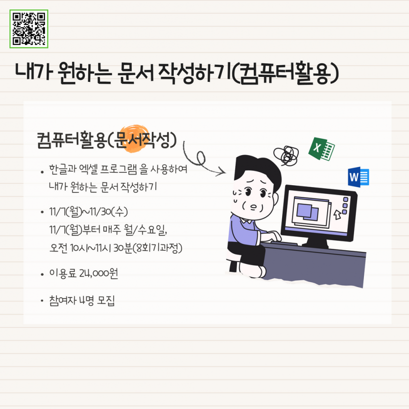 ▷내용: 한글과 엑셀을 사용하여 내가 원하는 문서 작성 교육
