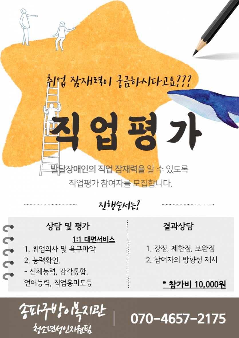 청소년성인지원팀에서는 발달장애인을 대상으로 직업잠재력을 알수 있도록 직업평가 대상자를 모집합니다.