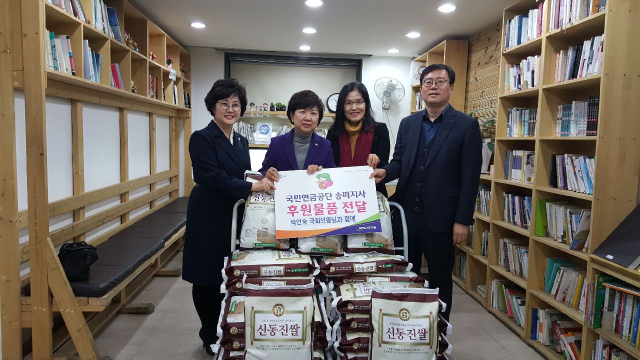 금번 후원지원은 국민연금 직원들의 따뜻한 기부금을 모아 박인숙 국회의원(송파갑)의 연계를 통해 이루어졌습니다.