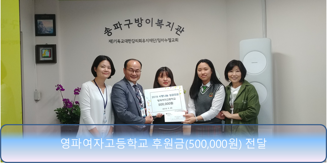우리복지관에 50만원의 후원금을 전달하였습니다.