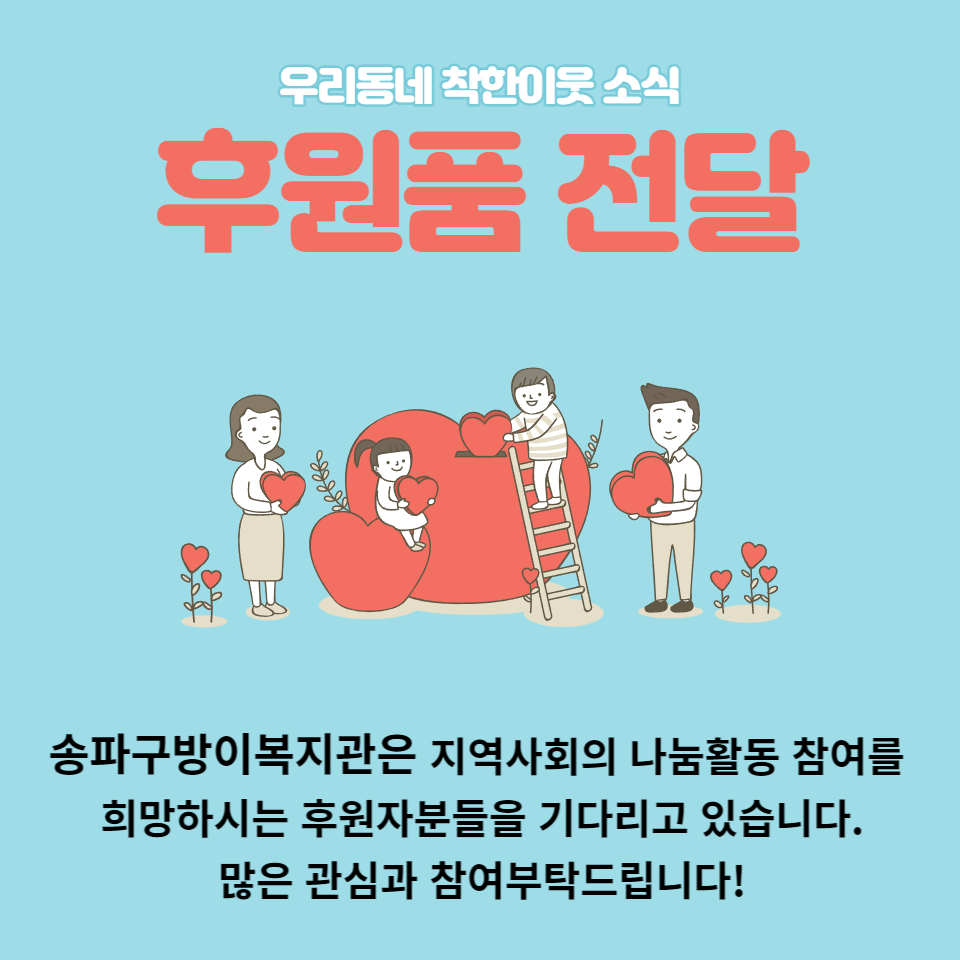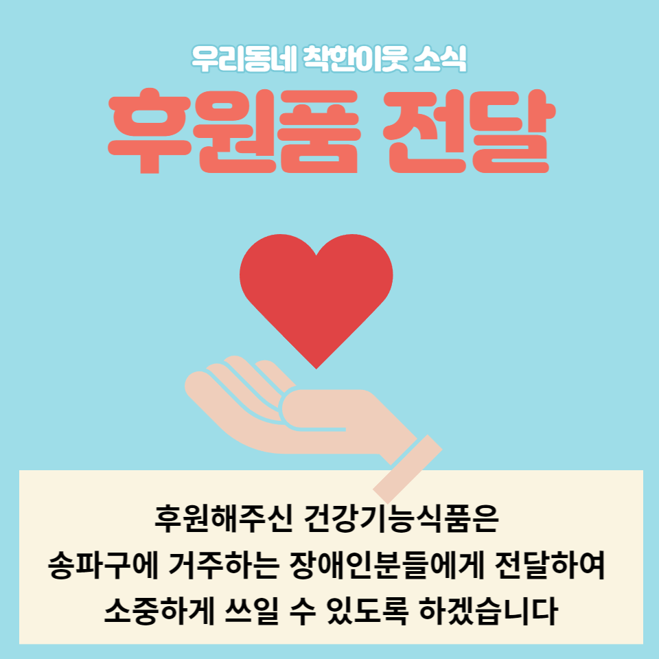 후원해주신 물품은 지역사회 장애인분들에게 전달하여 소중히 사용될 예정입니다.