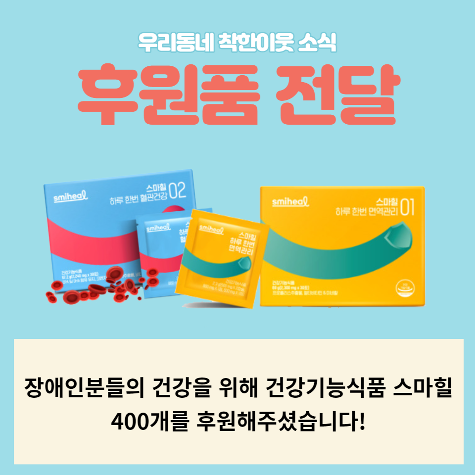 장애인분들의 건강을 위한 스마힐 하루한번 혈관건강 200개와 스마힐 하루한번 면역관리 200개를 후원해주셨습니다:)