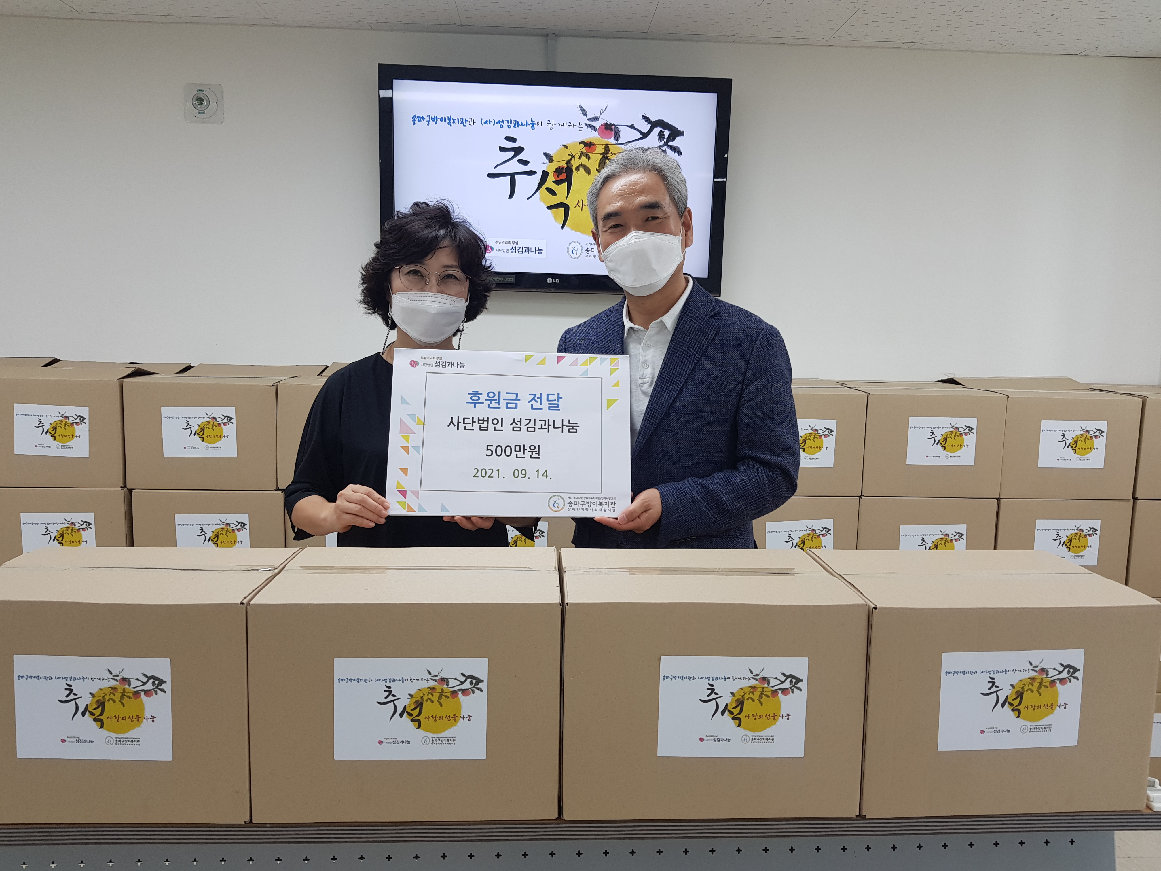송파구방이복지관 이용 장애인 150 가정을 방문하여 추석 선물 박스를 전달해 드리고, 명절 인사와 안부를 나누는 시간을 가졌습니다.