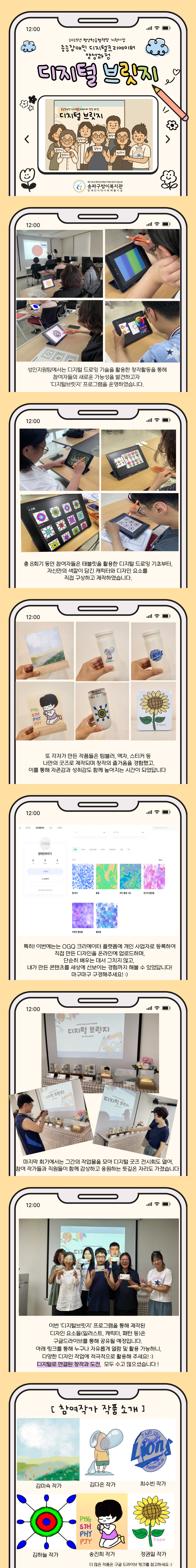 총 8회기 동안 참여자들은 태블릿을 활용한 디지털 드로잉 기초부터,