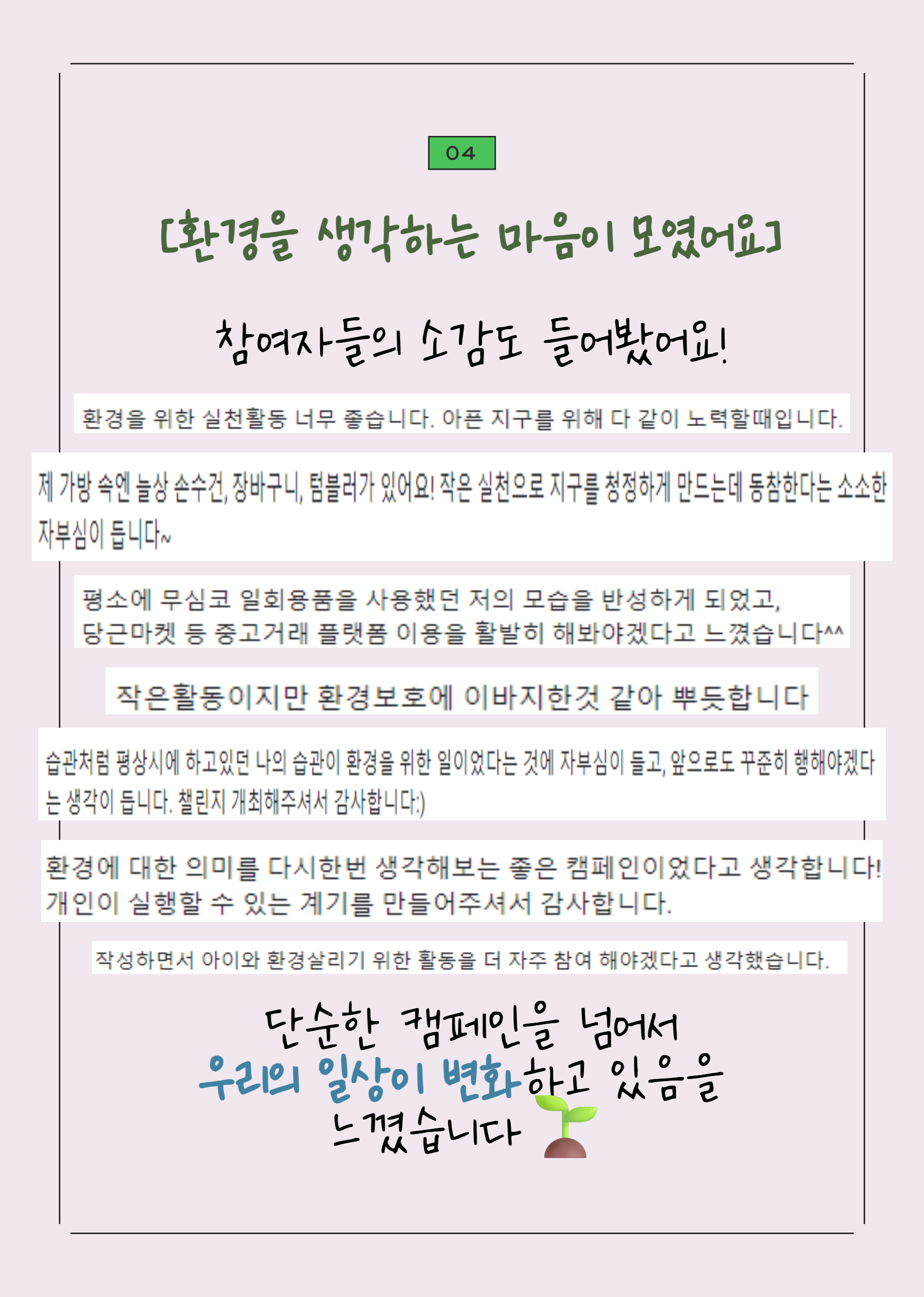 일상 속 작은 실천이 어떻게 모였는지,