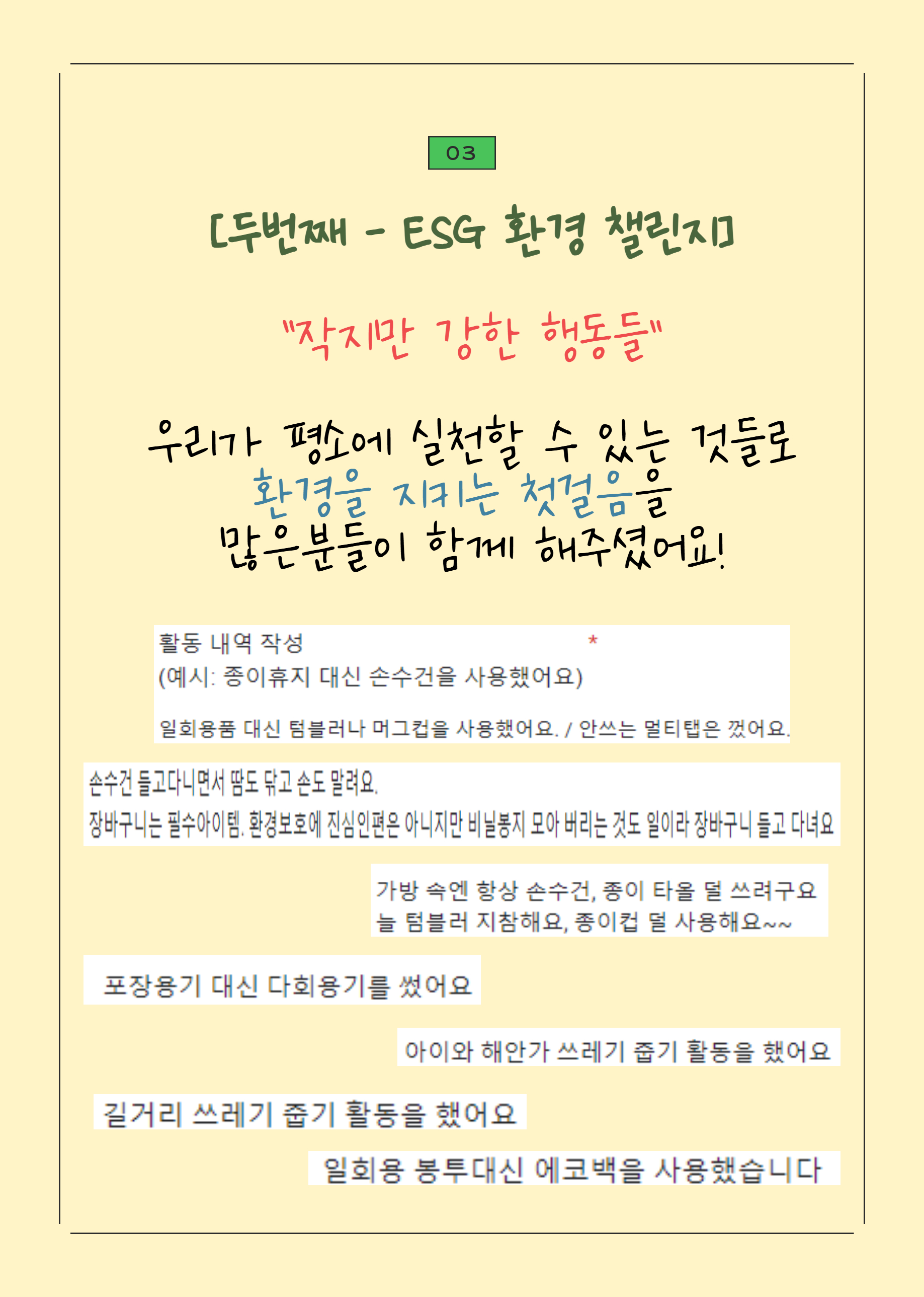 여러분과 함께한 ESG 환경 실천 챌린지!